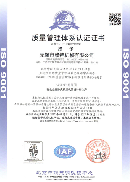 經(jīng)過(guò)研發(fā)團(tuán)隊(duì)多年來(lái)的努力,多個(gè)產(chǎn)品取得了高新技術(shù)產(chǎn)品榮譽(yù)稱號(hào)。公司研發(fā)團(tuán)隊(duì)人員堅(jiān)持不斷創(chuàng)新,將新技術(shù)運(yùn)用于產(chǎn)品中,現(xiàn)有多個(gè)項(xiàng)目研發(fā)中。 公司視產(chǎn)品質(zhì)量為生命,從原材料開始嚴(yán)格控制質(zhì)量,過(guò)程中每一道工序的檢驗(yàn)都有記錄,并通過(guò)了ISO9001質(zhì)量體系認(rèn)證,以過(guò)硬的質(zhì)量確保出廠的產(chǎn)品... 二十多年來(lái),我們所生產(chǎn)的2000余臺(tái)擠壓機(jī)暢銷國(guó)內(nèi)及世界各地,如 法國(guó)美泰樂(lè)公司、美國(guó)UAC公司(波音、空客飛機(jī)主要型材供應(yīng)商)、德國(guó)優(yōu)美科、阿聯(lián)酋、巴西、阿根廷、土耳其、越南、墨西哥等。 公司以優(yōu)質(zhì)完善的服務(wù)為客戶的滿意提供了保障,我們將想用戶之想,超用戶之想,不斷提高服務(wù)品質(zhì)。